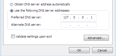 将DNS地址更改为127.0.0.1。